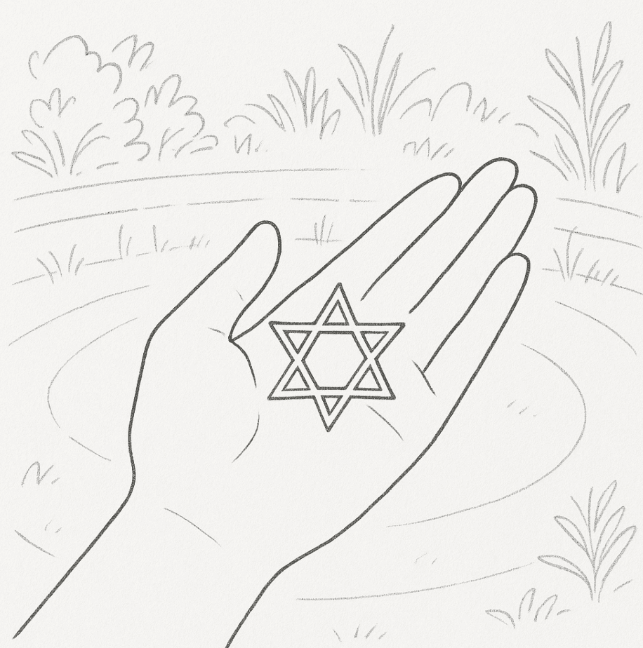 We enter an outdoor garden space. The path of smooth stones makes a nice noise underfoot, and these stones cover a circular area. We walk to the centre, and look out, seeing several white stone paths leading in different directions. One of them has brambles across it, and another leads across the lawn to a garden folly – a circular, temple-like building. We walk towards it, noticing only that it has columns, and has steps. We enter, and people we know are there, with a cocktail-party-like ambience. A woman in a long white dress approaches, with braided hair and gold jewellery. She gives us a golden coloured star, it feels like brass but shines like gold. We clasp it firmly, and remember the feel of its points on our palm as we wake.